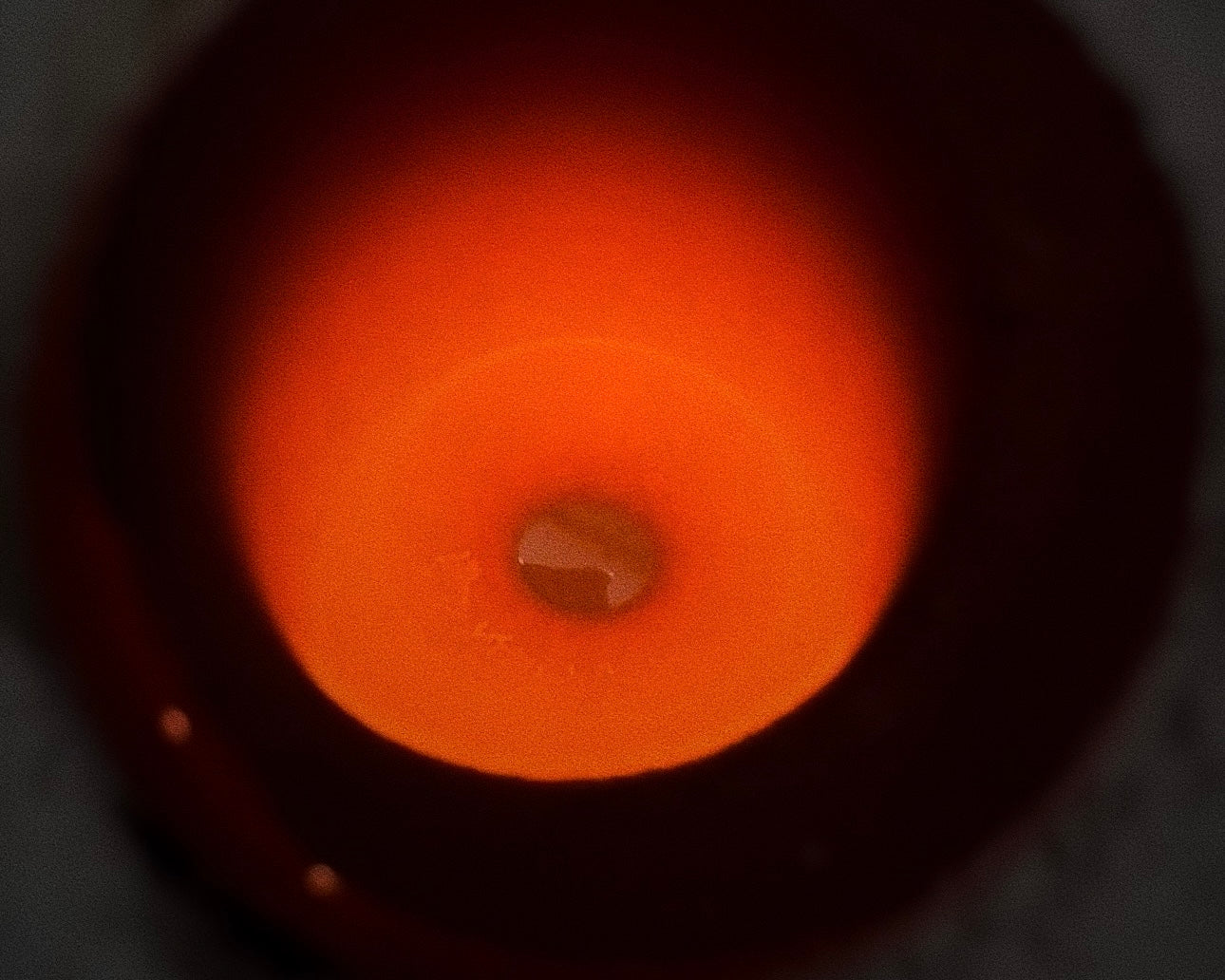 Festes Silber wird im Tigel erhitzt, bis aus einzelnen Pellets eine glühende, flüssige Masse wird. Was nach dem Guss entsteht, ist aber keine perfekte 1:1 Kopie, sondern ein Unikat mit minimalen Abwandlungen und eigenem Charakter.